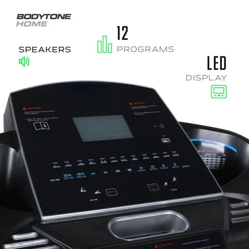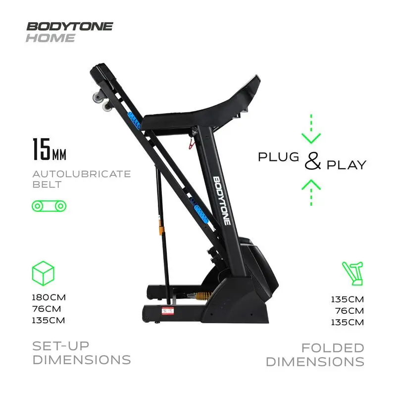 - Practica running en casa con la cinta de correr plegable BODYTONE DT18, con una velocidad máxima de 18 Km/h para un entrenamiento intenso.
