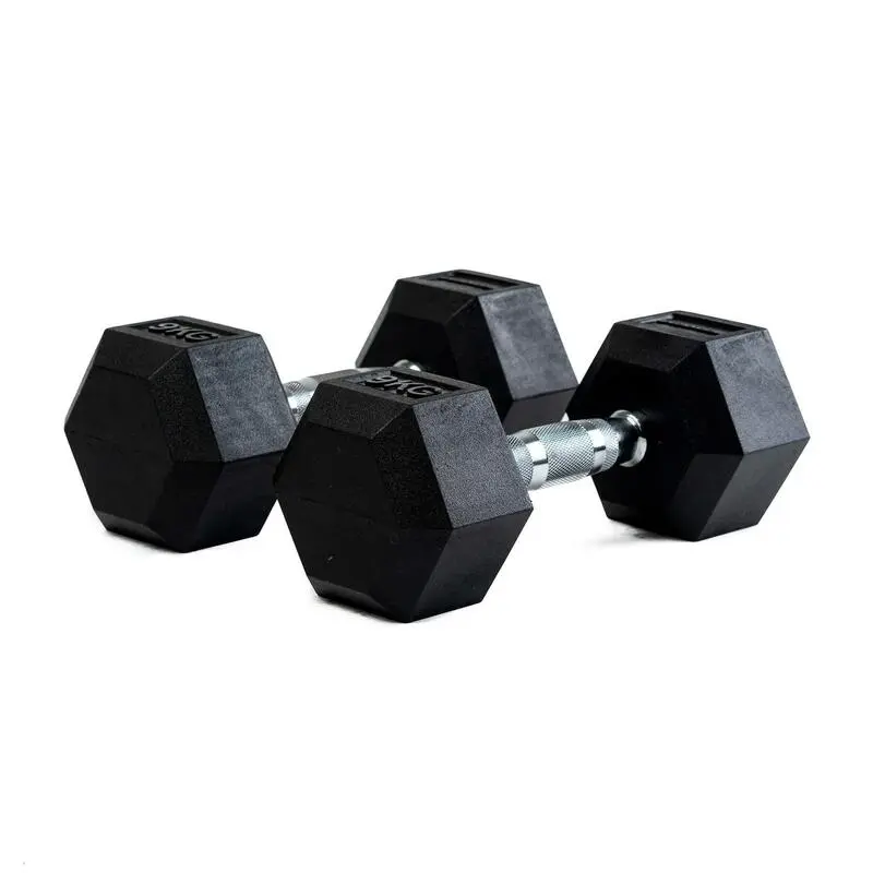 Compra en Decathlon Mancuernas de Goma Hexagonales profesionales 9Kg Mancuernas de Goma Hexagonales profesionales 9Kg
