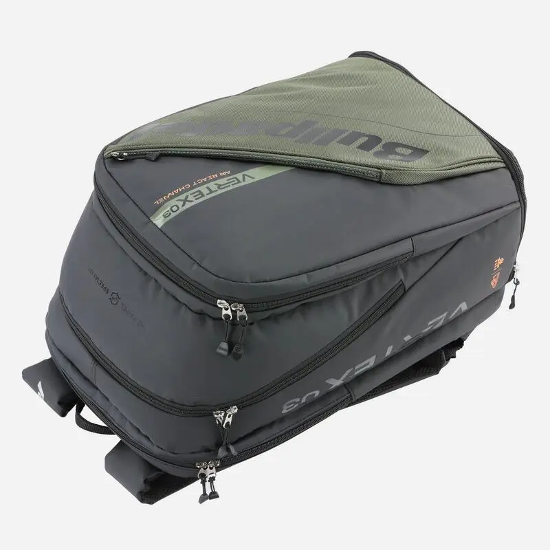 - Con un diseño ergonómico y funcional, la Bolsa De Pádel Isotérmica Bullpadel Vertex Caqui incluye compartimentos específicos para tus palas y accesorios.