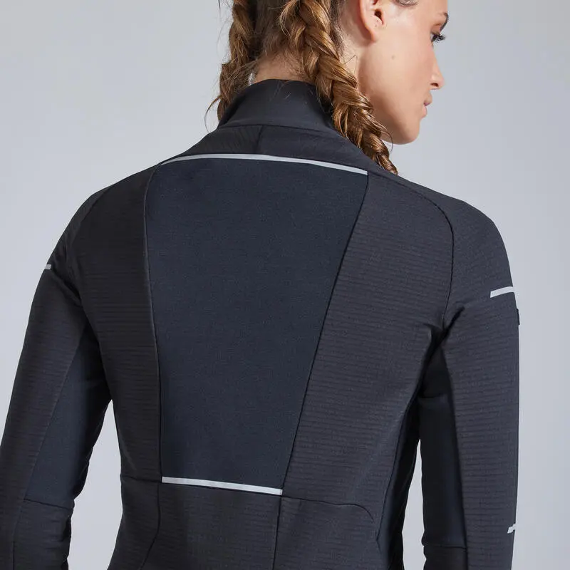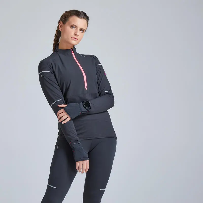 Camiseta Running Manga Larga con Cremallera para Mujer Kiprun Warm – Negro Coral
