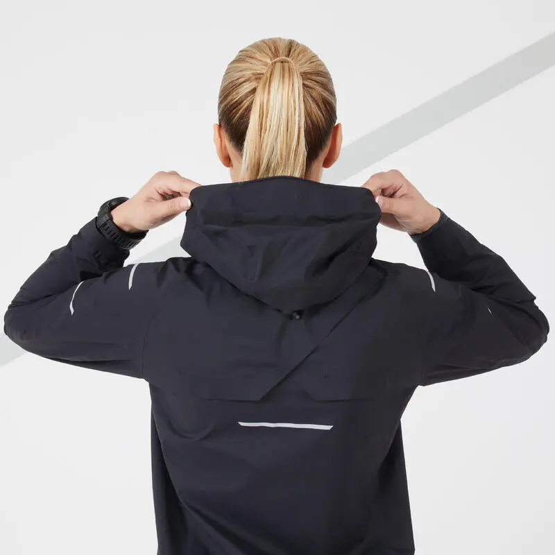 CHAQUETA DE RUNNING MUJER IMPERMEABLE CORTAVIENTO KIPRUN RAIN+ NEGRO – Ligera y Transpirable