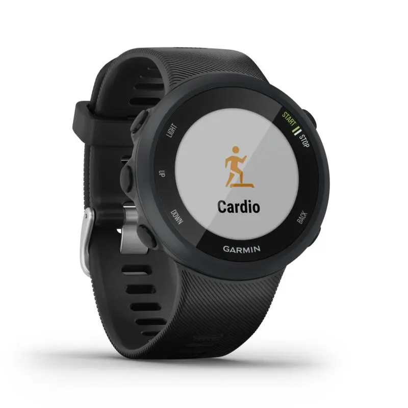 - Con su pantalla fácil de leer y su diseño ligero, el Forerunner 45 es ideal para entrenamientos diarios y competiciones, ofreciendo estadísticas detalladas de tu rendimiento.