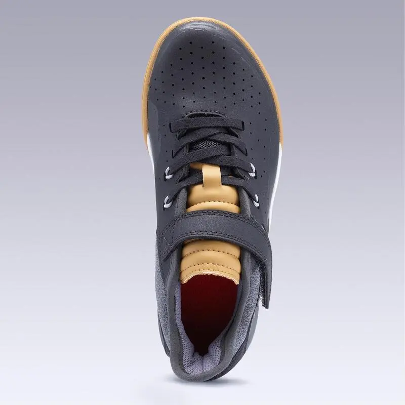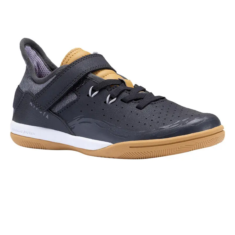 Compra en Decathlon Zapatillas Fútbol Sala Niños Kipsta Eskudo 500 Barrio Belcro gris Concebidas para niños que practican el fútbol sala y que hacen deporte en el colegio, sobre cualquier superficie.