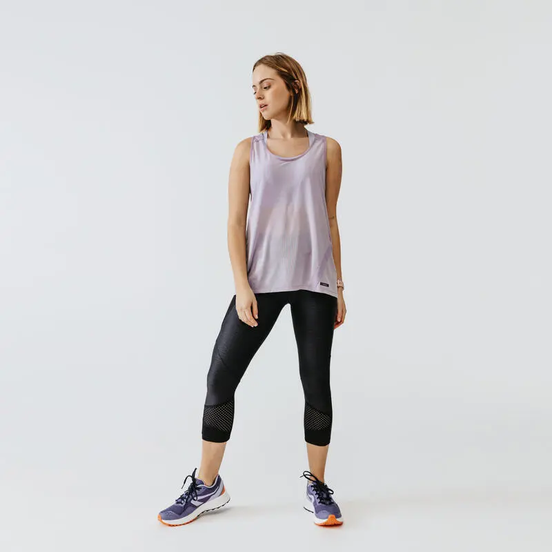 Compra en Decathlon Leggings Mallas running piratas Mujer Run dry+ feel Leggings piratas transpirables para salir a correr. Bolsillo lateral con cremallera para llevar lo imprescindible: móvil, llaves… y otro en la parte trasera.