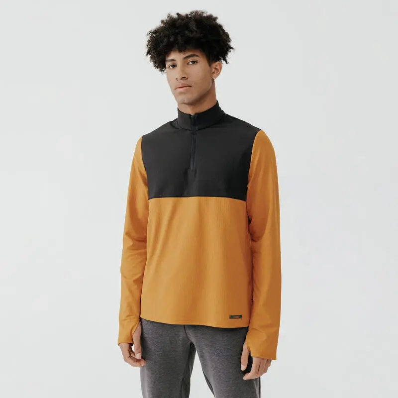 Kalenji Sudadera Running Hombre Manga Larga Cálida Warm 500 Ocre – Ropa Térmica para Otoño/Invierno