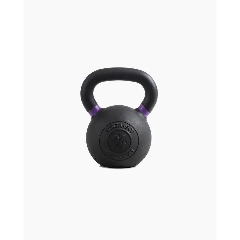 - Kettlebell de Hierro Fundido 24kg de Boomfit, diseñada para ofrecer durabilidad y rendimiento en tus entrenamientos de musculación y funcionales.