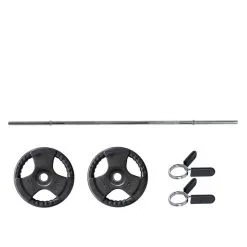 - Kit completo de musculación: Incluye una barra olímpica de alta resistencia y discos de 46 KG (25mm), perfectos para entrenamientos intensivos.