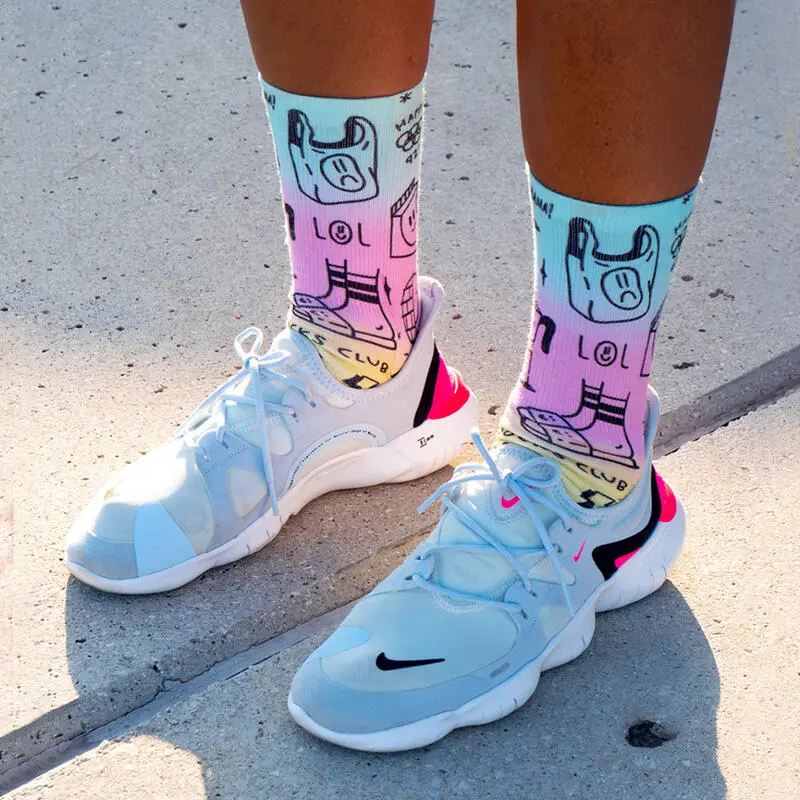 Compra en Decathlon Calcetin Running con tejido Coolmax Unisex Smile Club, sublimado Multicolor Diseñados para entrenar y competir en climas cálidos y húmedos, los calcetines de running de rendimiento Pacific and Co. están diseñados para niveles máximos de transpirabilidad.