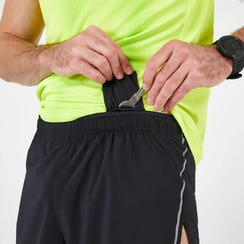 Compra en Decathlon Pantalon Corto Deportivo Atletismo Kalenji Split Hombre Este short de running ligero para hombre, para tus salidas a correr con tiempo caluroso. Con slip incorporado y un bolsillo con cremallera (70 mm x 140 mm).