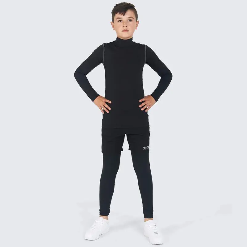 POWERLAYER Camiseta De Compresión Manga Larga Con Cuello Alto Para Niños – Running Niños